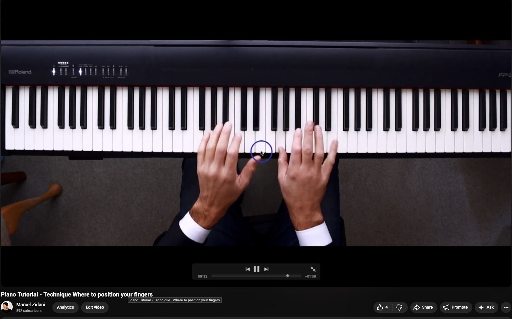 Finger four, in particular, often only needs the edge of the black key. It doesn’t need to reach in any further than that.